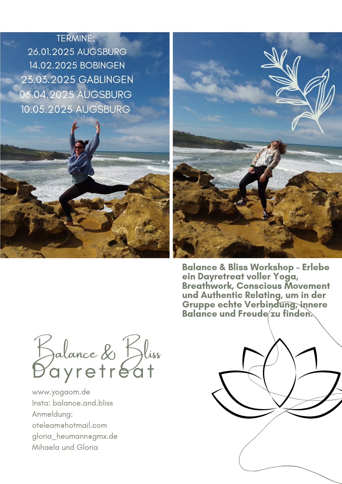 Unter dem Namen Balance & Bliss bieten wir ein kraftvolles und ganzheitliches Programm an, das Elemente aus Embodiment, Authentic Relating, Breathwork, Meditation, Yoga und Conscious Movement miteinander verbindet.